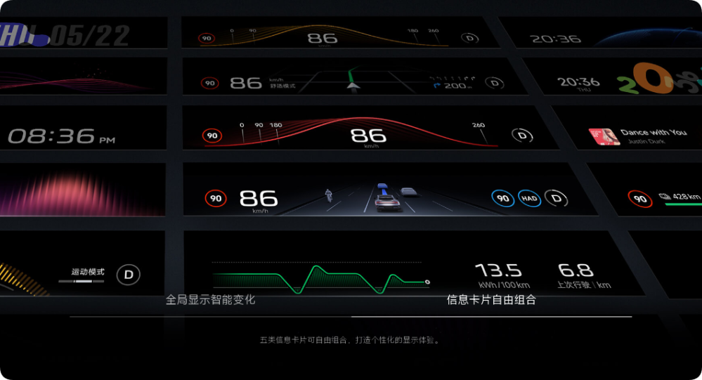 当然,天际屏也面临质疑。最大的槽点在于功能复杂度——有人吐槽它像把手机桌面搬进了车里。比如支持5类信息卡片自由组合,从车速、导航到天气、音乐,甚至能投射副驾专属的视频内容。但实际体验下来,我发现这套系统其实很“聪明”:
